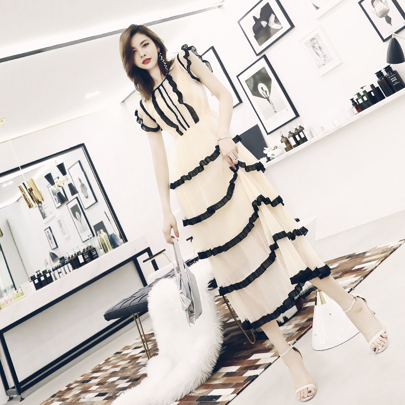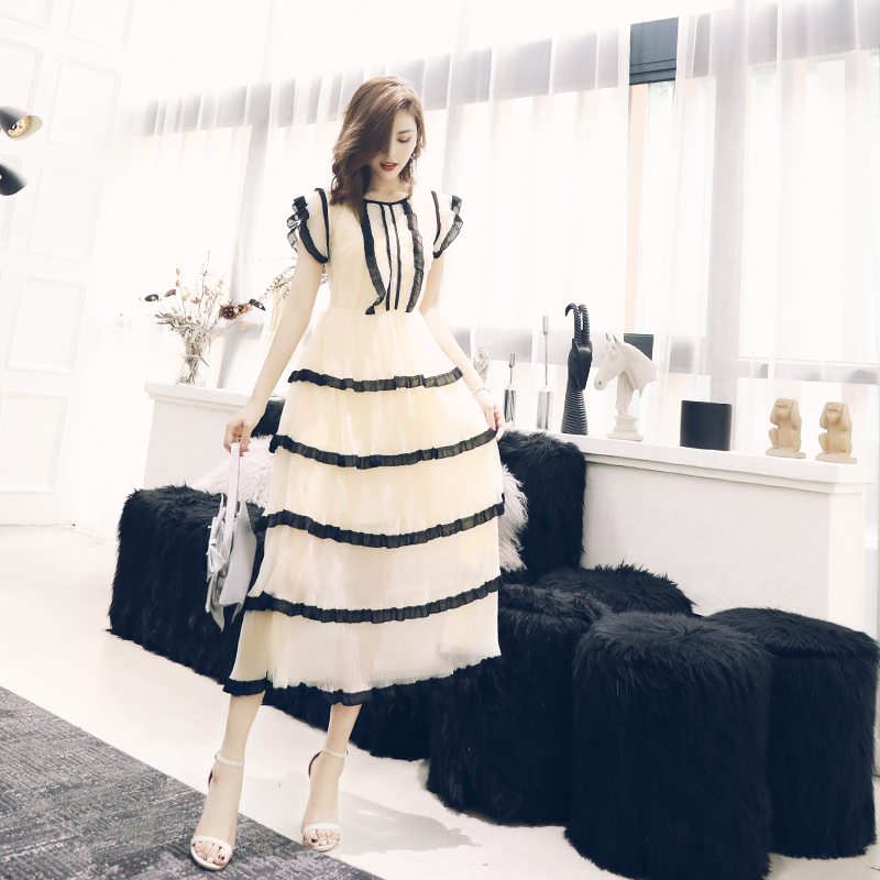 / 名媛淑女裙子夏季女2018新款吊帶裙高腰網紗蛋糕裙無袖連衣裙套裝
