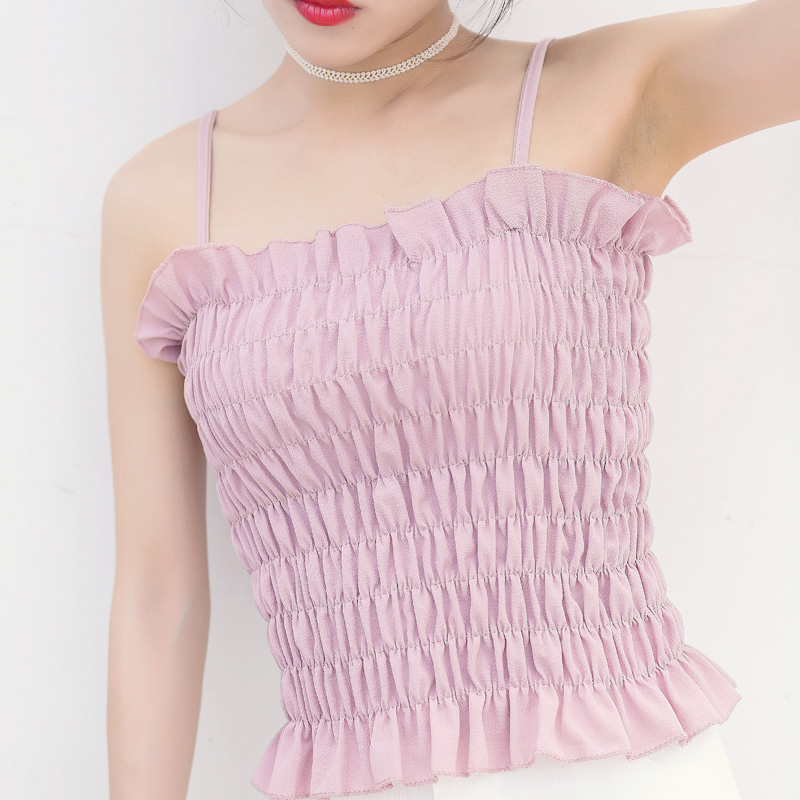 甜美背心款,褶皺設計的哦,裹胸彈力是比較大的呢