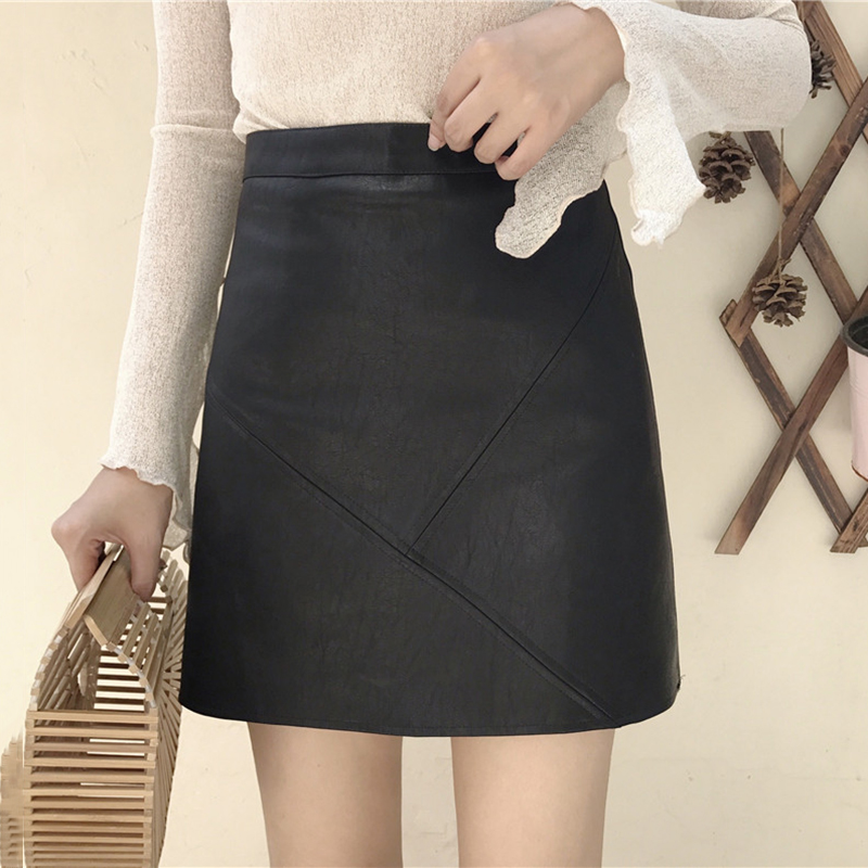 / 時尚A字裙秋裝女2018新款復古港味高腰黑色pu皮裙氣質休閑短裙子
